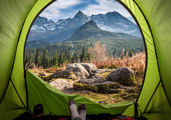Pick your campsite with safety in mind. Look for level ground sheltered by surrounding trees and rocks, if possible. To avoid lightning strikes, don’t set up under the tallest tree.